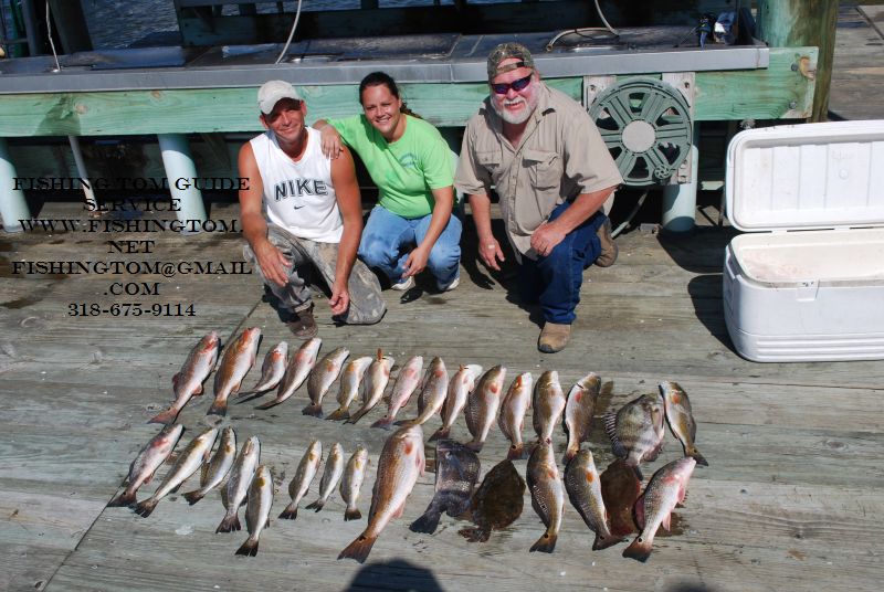October 14, 2010 Brian D., Darrell, & Chastity Limit on Big Lake Bronze Beauties!!!! Live Shrimp helped us overcome 22 MPH winds and fill the cooler with nice 2 to 4 pound Lake Calcasieu Redfish! We had to move several times and finally found some nice trout willing to bite plus a few nice flounder to finish the day with 2 Big Lake Slams!!!