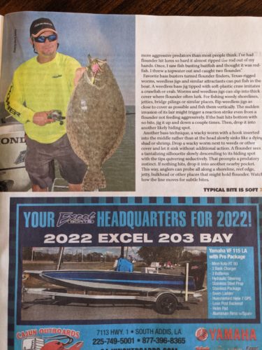 Fishing Tom Guide Service is featured in this month’s Louisiana Sportsman. Check it out and call to book your trip for the spring flounder run. 318-675-9114.